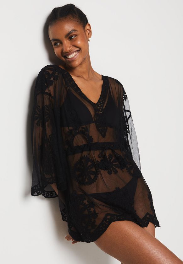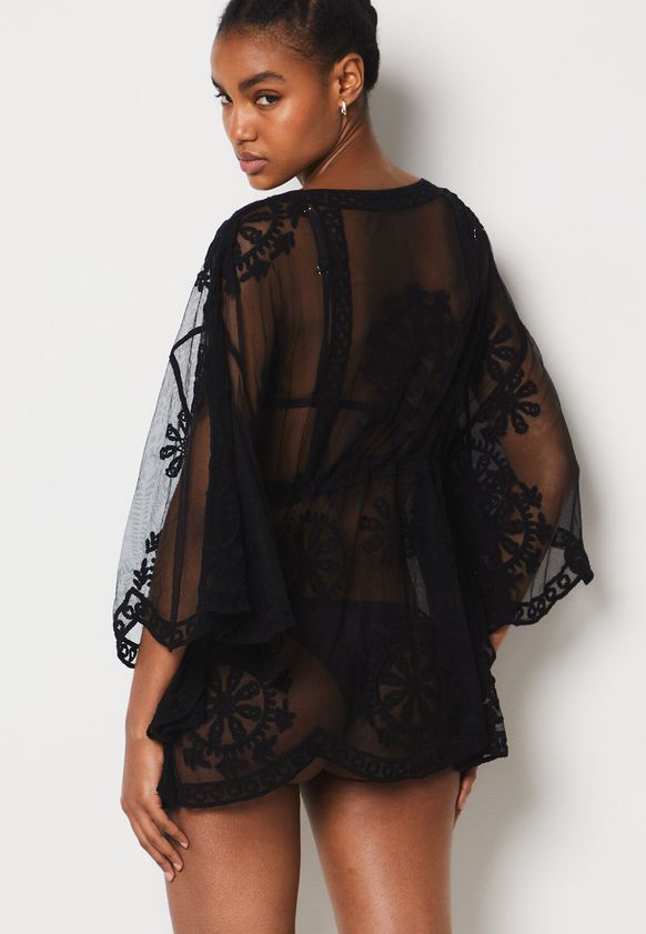 Tunique courte brodée transparente -Black-S